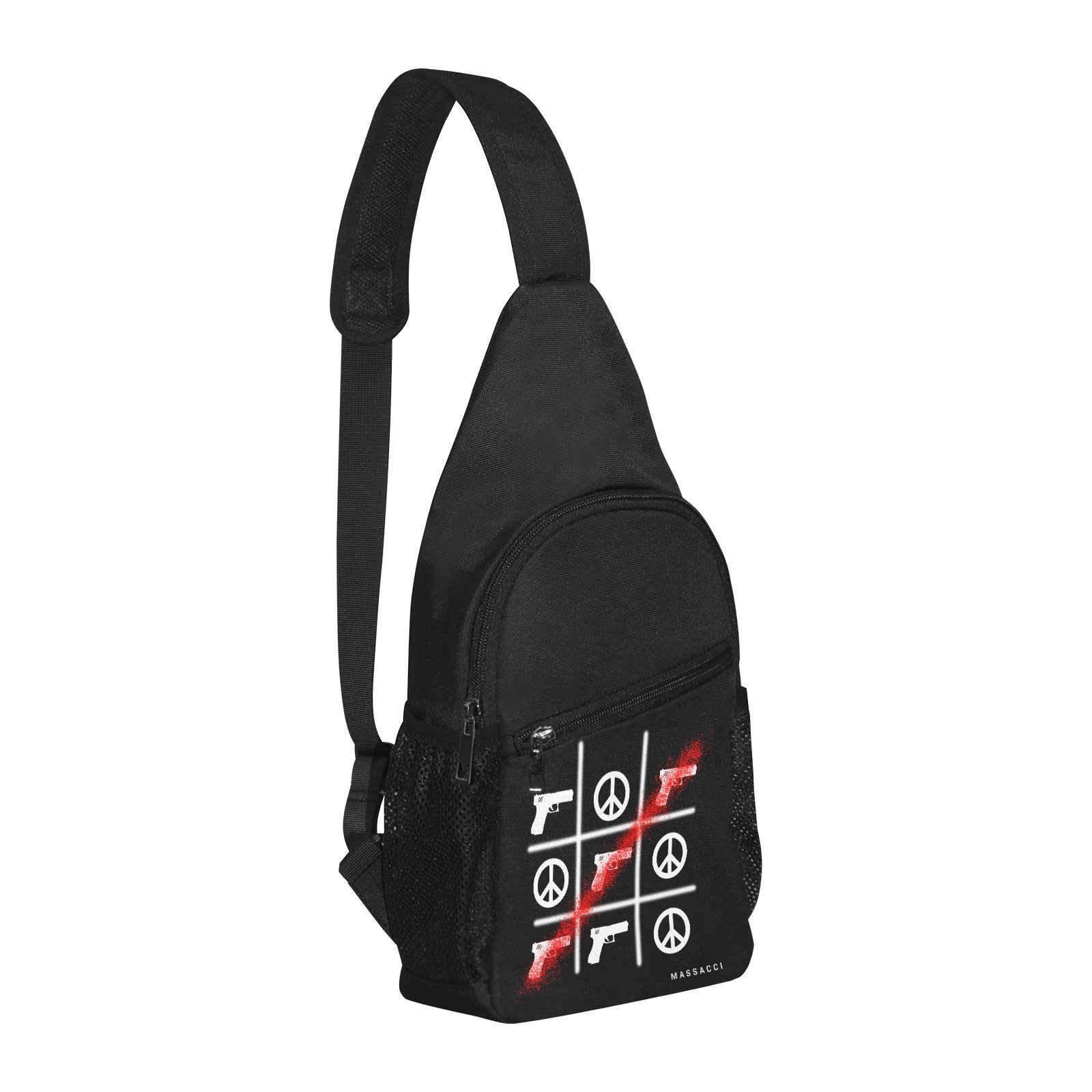 Durable, reinforced, polyester material, unisex design, eco-friendly casual life design. One-shoulder strap, wearing as a single-shoulder bag or a cross-body pack. Adjustable mesh padded shoulder strap and back panel.